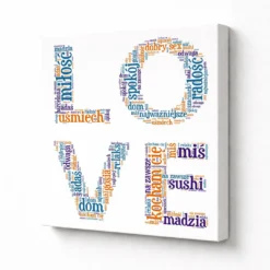 Obraz z wybranych przez Ciebie słów to spersonalizowany pomysł na prezent idealny w przypadku gdy nie masz bądź nie chcesz używać zdjęć. Do dyspozycji masz wiele gotowych szablonów. Obraz z liter i słów to doskonały pomysł na prezent na rocznice.